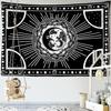 Soare, Lună, stea, tapiserie agățată pe perete, iluzorie, vrăjitorie abstractă, imprimare în alb și negru, decor boem pentru dormitor