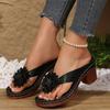Papuci noi de vară pentru femei Sandale cu toc înalt Femei Grosi Doamnă Modă Floare Gură de pește Papuci de plajă Pantofi pentru mamă Negru