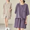 Rămâneți confortabil și elegant în acest costum de primăvară și vară respirabil și ușor. Setul include un top largi și pantaloni scurți casual, perfecti pentru un look relaxat. Având un gât rotund, mâneci scurte și un design de culoare uni, acest costum casual pentru femei este atât simplu, cât și la modă..