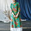 Johnature Femei Vintage Stand Rochii Seven Maneci Print Floral Summer A-Line Style Chinese Style