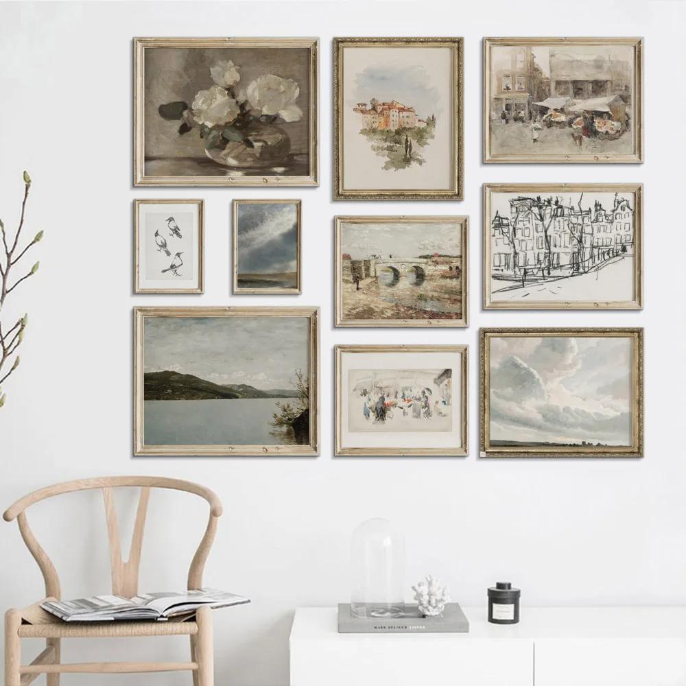 Nordic Canvas Posters and Prints for Home Decoration, Vintage Gallery Wall Print, Lake, Cloud, Landscape, Flower Paintings, Livi