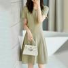 Women's Casual Dress Large Size Slim Career Dress Summer Elegant Short-sleeved Waist A-line Dress