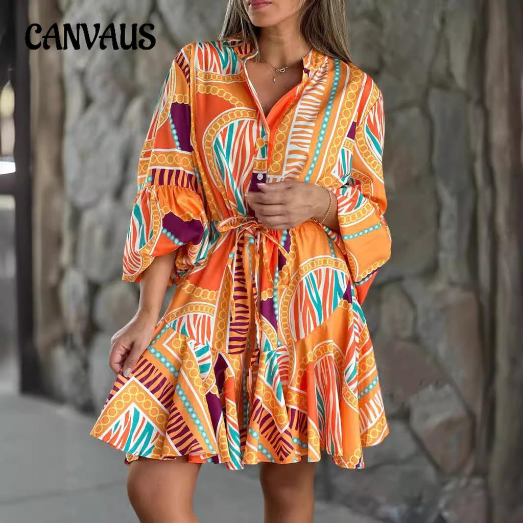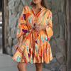 Rochie de damă de mărime plus mare, cu decolteu în V, cu mâneci evazate, cu imprimeu tort Rochii mozaic