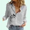 Cămașă de in și bumbac la modă pentru femei, vară și toamnă, cu mâneci lungi, top lejer, bluze cu nasturi cu imprimeu casual pentru femei