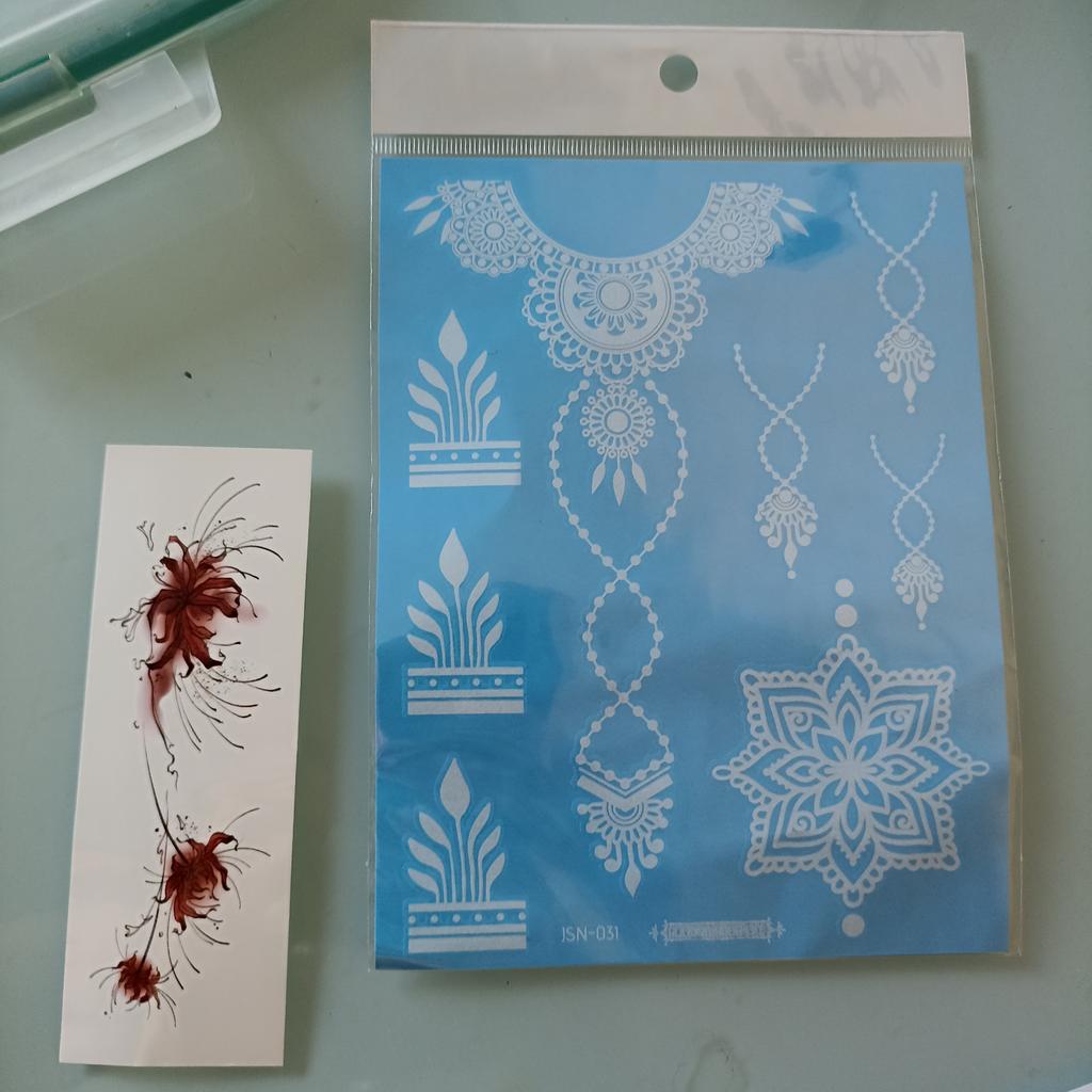 1 foaie de tatuaj temporar cu henna cu mandala albă, rezistentă la apă și durabilă