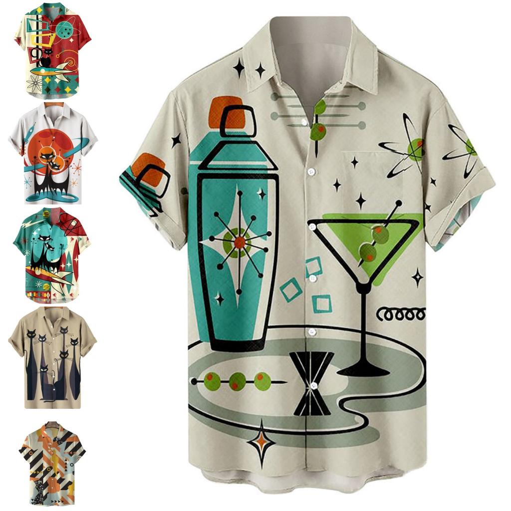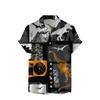 Cămașă pentru bărbați de mărime mare de vară europeană și americană Hong Kong, imprimare digitală 3D Cămașă casual cu mâneci scurte Îmbrăcăminte bărbătească