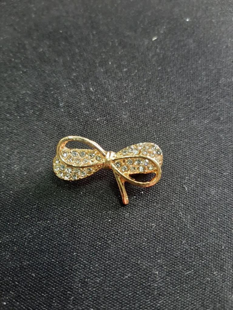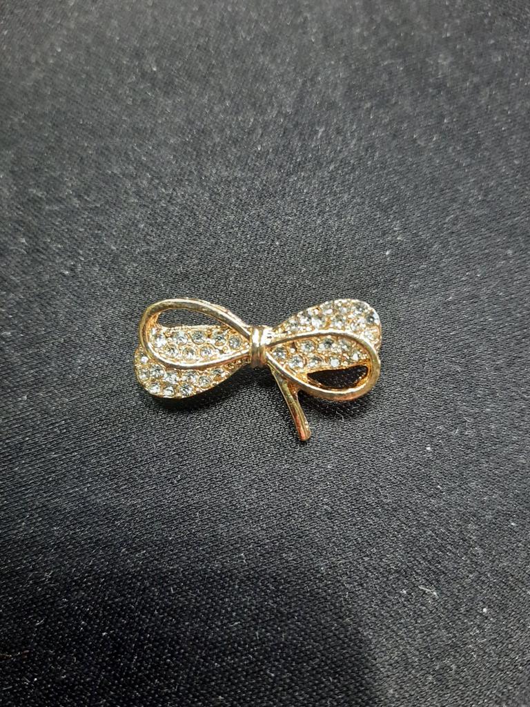 O broșă drăguță, minusculă, de 15 mm, cu pietre strălucitoare și un ac ca un ac
