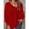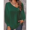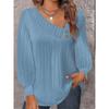 Bluză de damă de primăvară și toamnă Bluză simplă plisată cu decolteu în V cu nasturi Top cu mânecă lungă de culoare uni