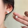 Cercei de modă C Bijuterii de culoare argintie Cercei tip pisică cu perle mici pentru femei, fete, cercei cu flori de margarete de vară