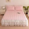 Volan de pat din dantelă cu model în formă de inimă, de înaltă calitate, matlasat, cu tiv inferior din șifon, cuvertură de pat, moale, confortabil, cearșafuri de pat antiderapante, lenjerie de pat