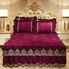 Cuvertură de pat cu relief de catifea de culoare solidă Fusta de pat matlasată de pluș Husă de protecție pentru pat King Size, care nu include fața de pernă