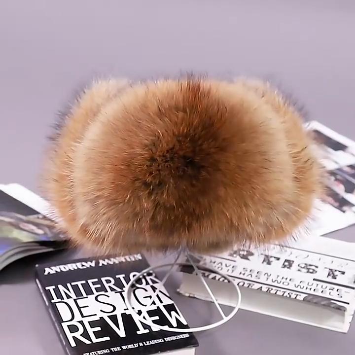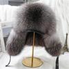 Pălărie bomber din blană de vulpe argintie 100% pentru bărbați de iarnă. Pălărie Ushanka din blană de raton