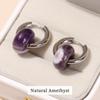 Change Better Pietra naturala Agat Turcoaz Argintiu Cercei Cercei Femei Oțel inoxidabil Catarame pentru urechi agățate în formă de gogoși