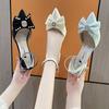 Vară Femei Fetiș 7cm Tocuri înalte Sandale din satin Damă cu vârf ascuțit Tocuri joase Funda elegantă Nuntă Petrecere Mireasă Pantofi de mătase