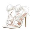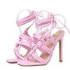 Design de modă de vară, cu curele din țesătură de cristal, sandale pentru femei, cu vârf deschis, gleznă, cu șireturi, cu tocuri înalte, pantofi de bal de petrecere, roz