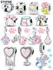 Nou S925 argint roz inimă animal labe imprimare pandantiv cu zircon clar mărgele de modă se potrivesc cu brelocuri originale brățară bijuterii femei