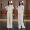 Creșteți-vă stilul cu acest costum șic pentru femei, cu un design de culoare solidă și un stil casual, simplu, perfect atât pentru purtarea zilnică, cât și pentru navetă.. Setul include un top elastic cu mâneci scurte și pantaloni largi, care măgulesc majoritatea formelor corpului și vă arată personalitatea unică..