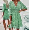 Mid length Dress Waist Pullover Bohemian Printed Short Sleeve Fragmented Flower Dress Plus Size