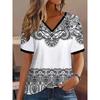 Top de damă de vară, modă nouă, alb, cu flori curbate imprimate, casual, cu fermoar, decolteu în V, mânecă scurtă