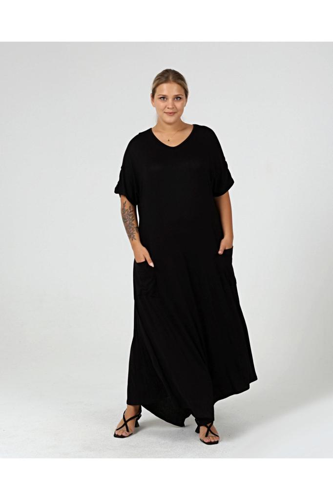 Rochie maxi cu fustă și buzunare laterale, mărime plus