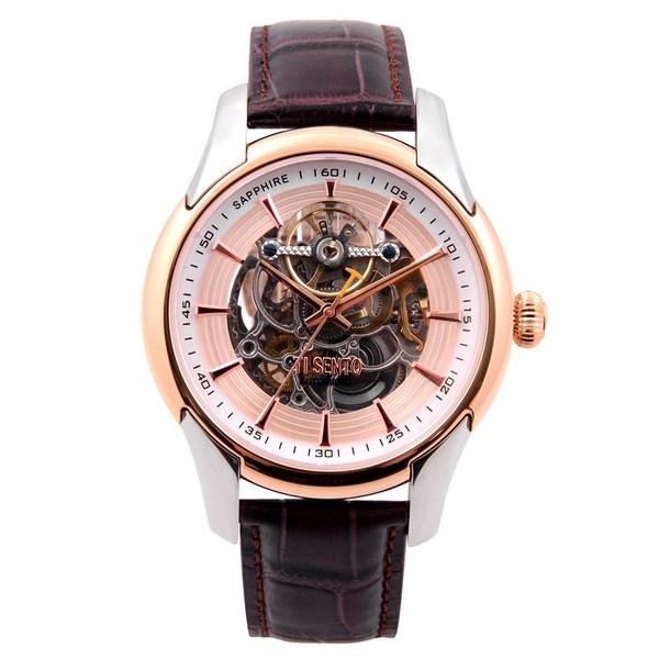 [Ticento]Skeleton automatic leather watch TS60011ROCH, Korean Luxury Watches