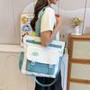 Geantă de umăr cu buzunare multiple pentru studenți, Geantă tote cu literă în culoare contrastantă pentru femei, Rucsac școlar, Capacitate mare, Geantă de călătorie