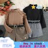 Kid Girl Suits Plaid Vest Tops with Shorts Autumn Winter Casual Suit School Uniform Children Kids Outfits