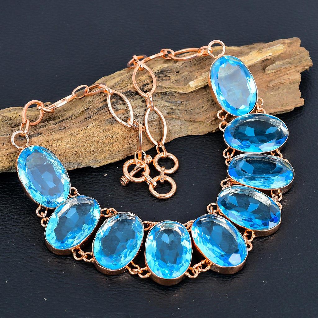 Colier cu topaz albastru, bijuterii tip colier, bijuterii lucrate manual cu topaz din cupru, cu lanț reglabil pentru ea