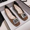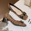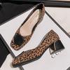 Marime Plus 35 -43 Femei Imprimeu Leopard Toc Gros Pompi Toc Med Toe Pătrat Moda Cataramă Office Lady Pantofi din piele Pantofi cu slip On