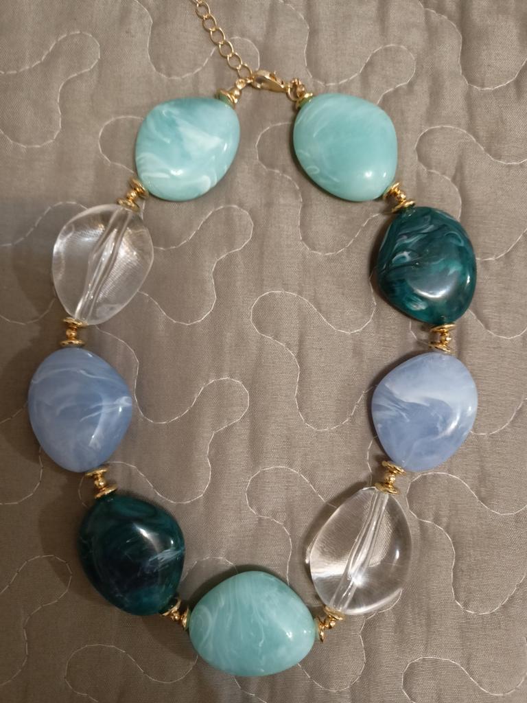 💝Un colier foarte frumos! Mare, spectaculos. S-ar părea că este din acril simplu, dar arată la maxim 💯💯💯👍‼️ Se poate purta cu orice. Fie cu o rochie de gală, fie cu un tricou obișnuit! Culorile sunt alese superb, sunt foarte revigorante!!! Lungimea mărgelelor 39 cm + extensie 10 cm! Este greuț, dar te obișnuiești repede! Super! Îmi place, nuuu foarte mult! 🥰😘❤‼️