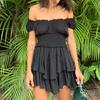 Off Shoulder Short Sleeve Lace Casual Dress Women Summer Slim Sexy Short Dress Woman High Waist Layered Ruffle Dresses 27780