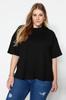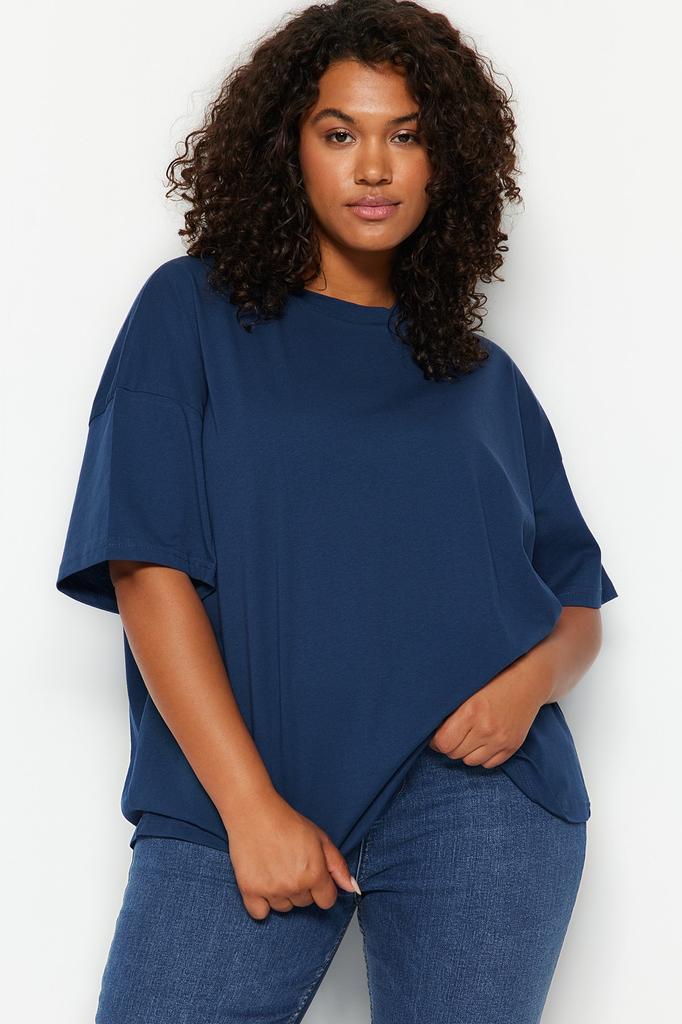 Tricou de bază tricotat de bază cu guler cu guler, stil de damă, albastru marin