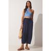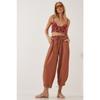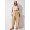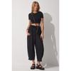 Women's Black Pocketed Linen Viscose Shalwar Trousers Cv00001