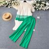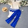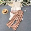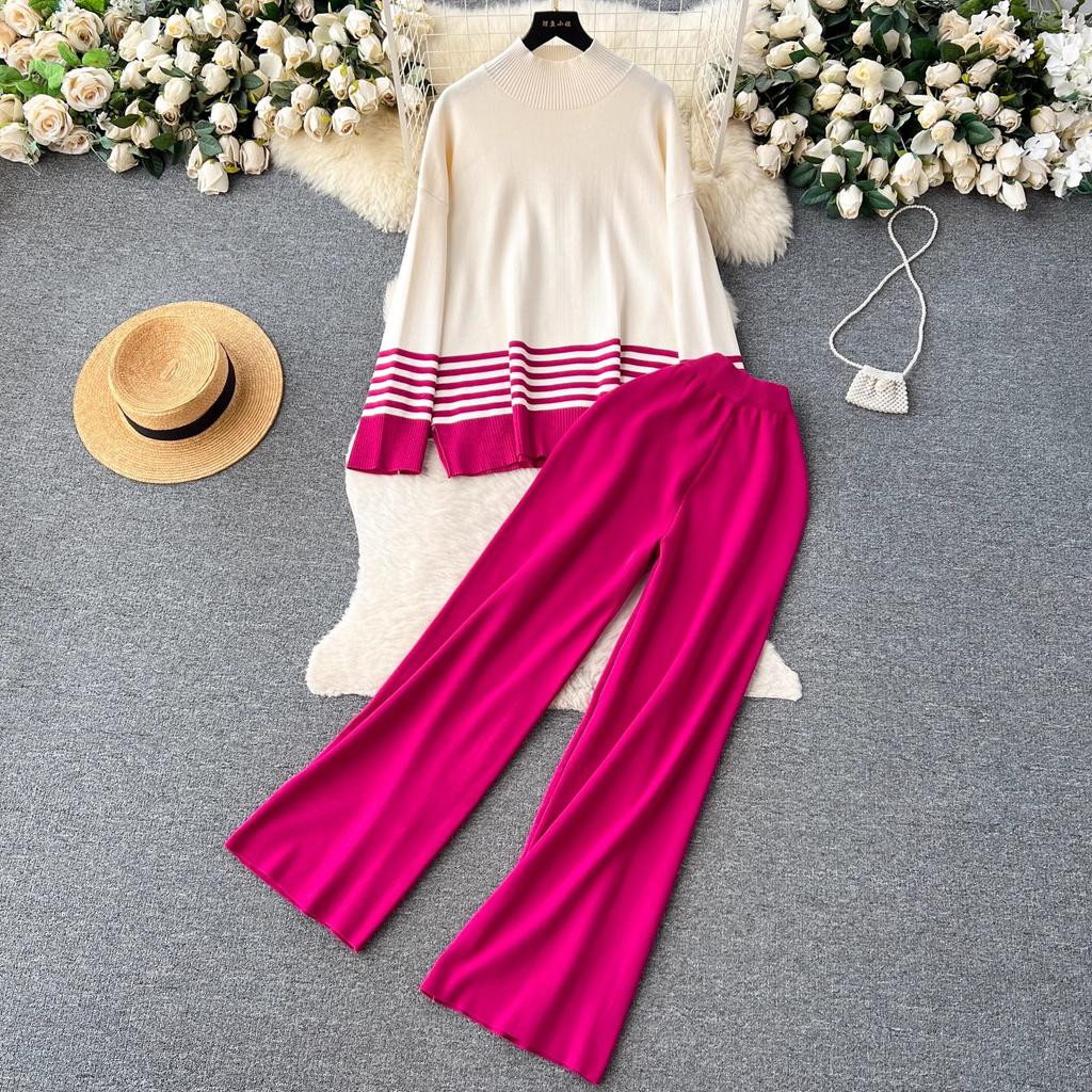 Toamnă Iarnă Femei Grătul cu mâneci lungi Pulover tricotat în dungi Topuri + Pantaloni largi Costume Set două piese Tinute femei