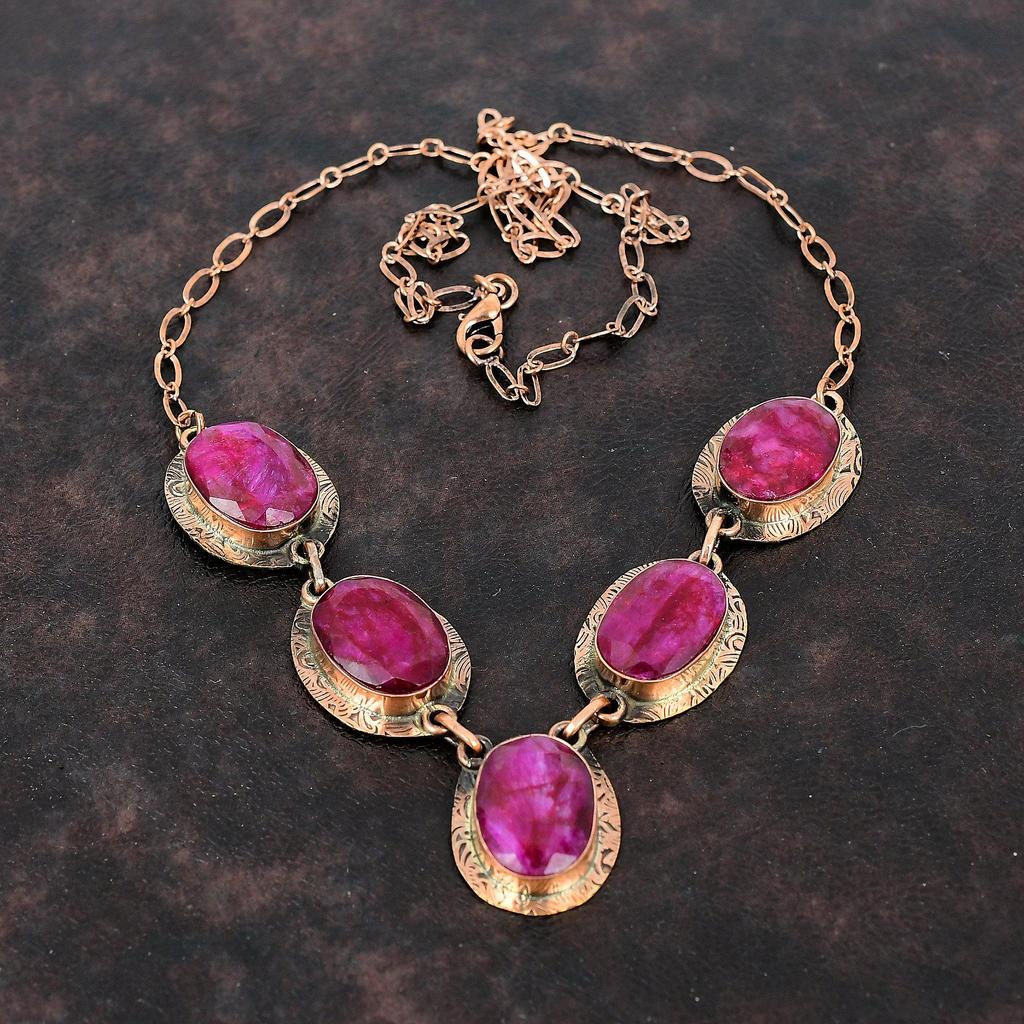 Colier cu pietre prețioase din rubin Kashmir fațetat Colier din cupru Colier cu lanț reglabil Bijuterii din cupru foarte frumoase Colier lucrat manual cadou pentru soție