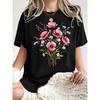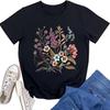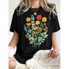 Tricou pentru femeie, epocă, imprimeu cu flori sălbatice, cu gât rotund, Topuri casual, flori de vară, iubitor de natură, artă florală, tricou cu flori sălbatice