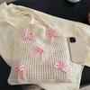 Yogodlns Geantă de umăr din croșetat pentru femei, de capacitate mare, design cu fundă, geantă de mână estetică, pentru cumpărător, geantă de umăr de zi cu zi Geantă ocazională pentru navetă