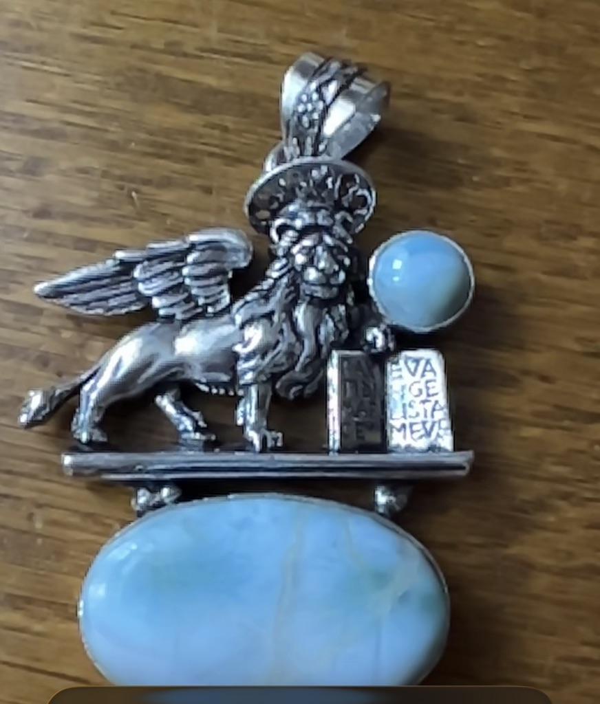 Lion of Saint Mark Larimar Gemstone Silver Pendant | 925 Sterling Silver | Necklace Pendant | Handmade Vintage Pendant Jewelry for Her/him