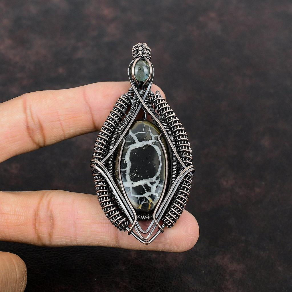 Noroi marocan Crack Fosil Pandantiv Sârmă de cupru Pandantiv înfășurat Pandantiv lucrat manual Bijuterii de cupru Pandantiv labradorit Bijuterii cu pietre prețioase pentru cadou