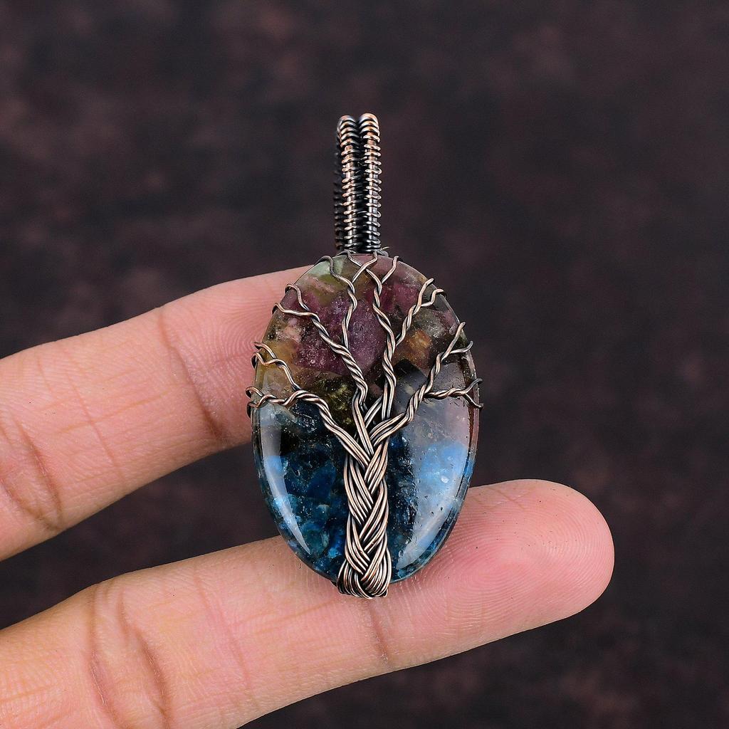 Arborele vieții Pepene verde Turmalină Pandantiv înfășurat cu sârmă Pandantiv cu pietre prețioase Pandantiv din cupru Bijuterii învelite în sârmă Cadou pentru el Pandantive lucrate manual