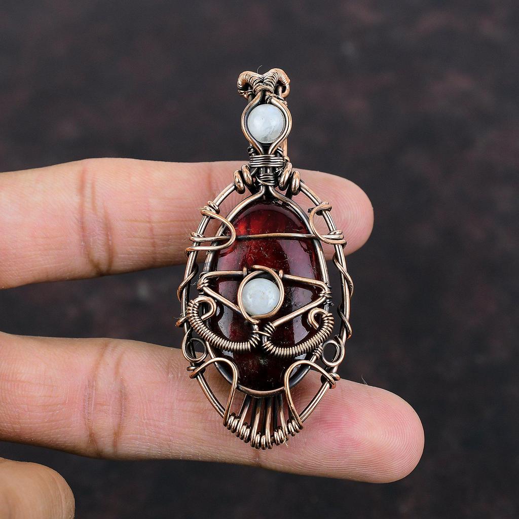 Pandantiv cu labradorit roșu de foc, sârmă de cupru înfășurată în curcubeu, pandantiv cu piatră prețioasă, cadou manual pentru mama, bijuterii din cupru cu piatră prețioasă