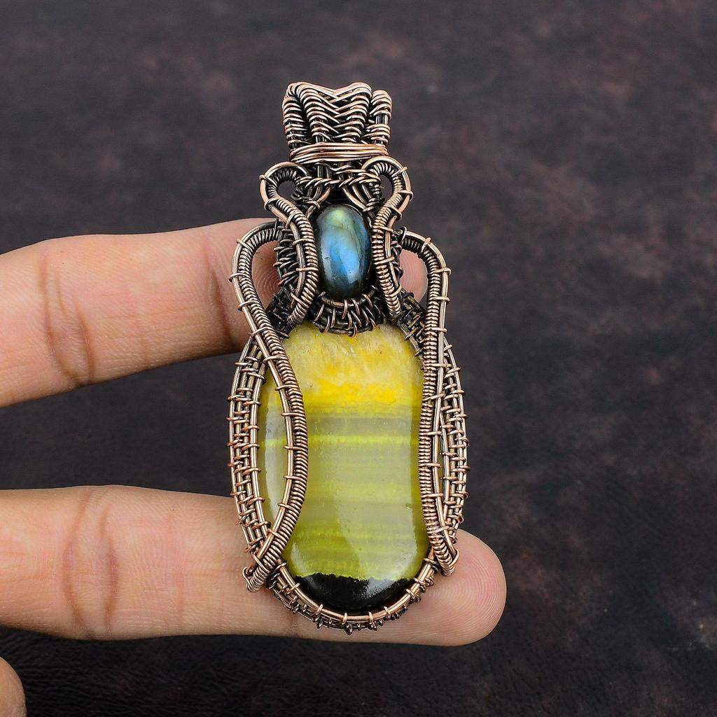 Bumble Bee Jasper Pandantiv Sârmă de cupru Pandantiv înfășurat Bijuterii cu pietre prețioase Pandantiv labradorit Pandantiv lucrat manual Sârmă de cupru Bijuterii Cadou pentru mama