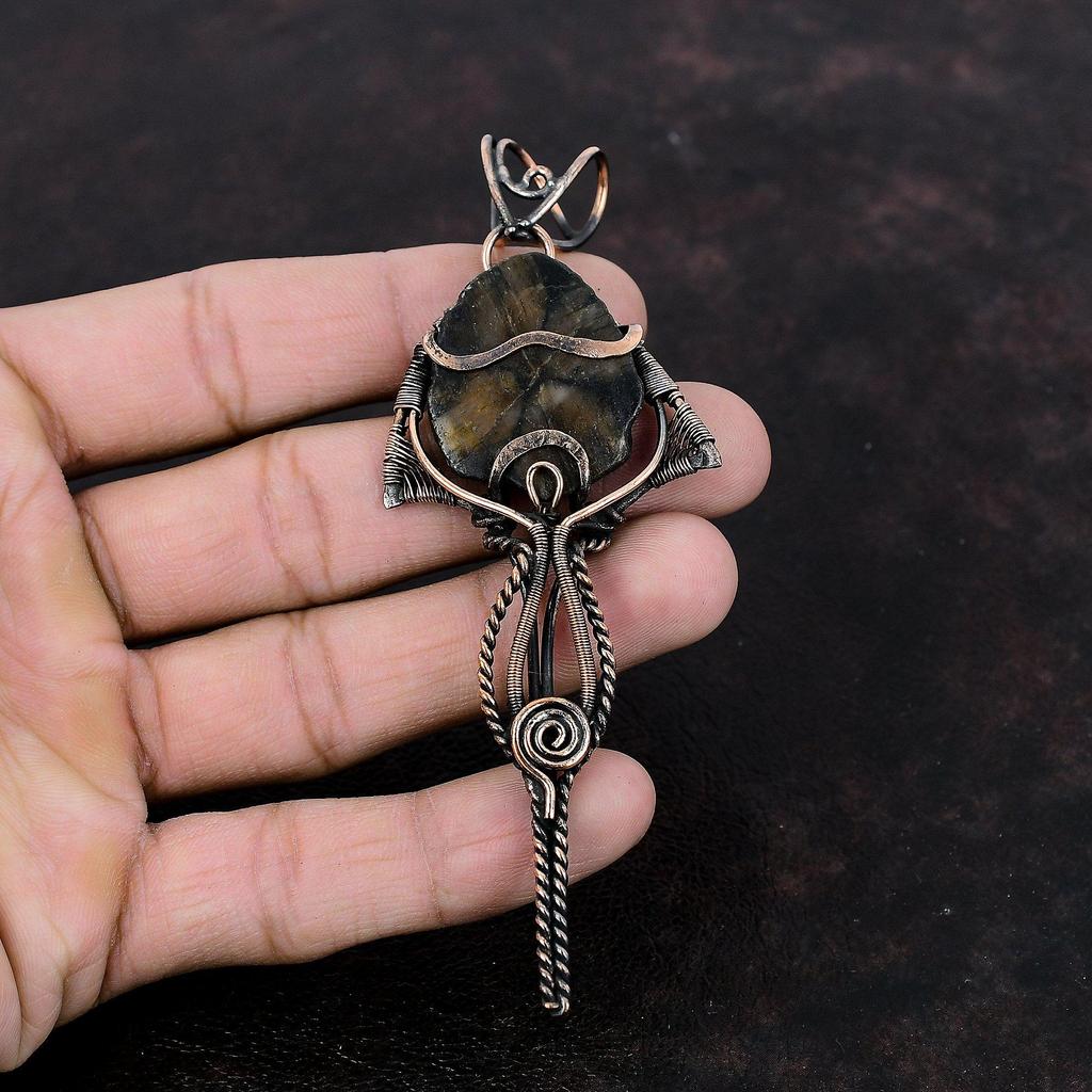 Pandantiv Piatră Prețioasă Chiastolit Pandantiv Înfășurat în Sârmă de Cupru Bijuterii Handmade cu Chiastolit Cadou Pentru Ea Bijuterii Minunate din Cupru Pandantiv Uimitor
