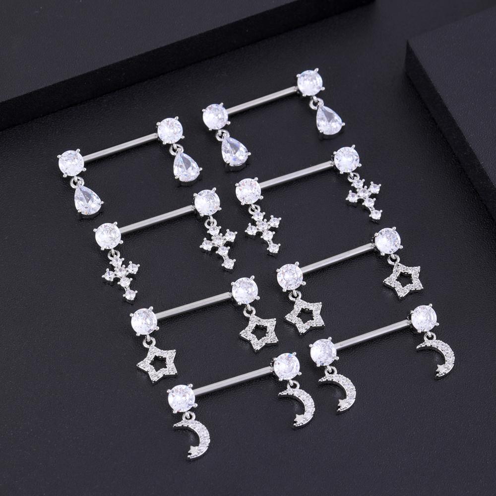 2 bucăți drăguț urs fluture dangle piercing mamelon oțel inoxidabil cruce stea agățat mamelon scut barbell pentru femei inele mamelon