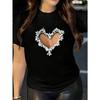 Plus Size Women Summer Purple Hollow Heart Printed Comfy Short Sleeve Round Collar T-shirt Casual Baggy Mid Length Tee Tops