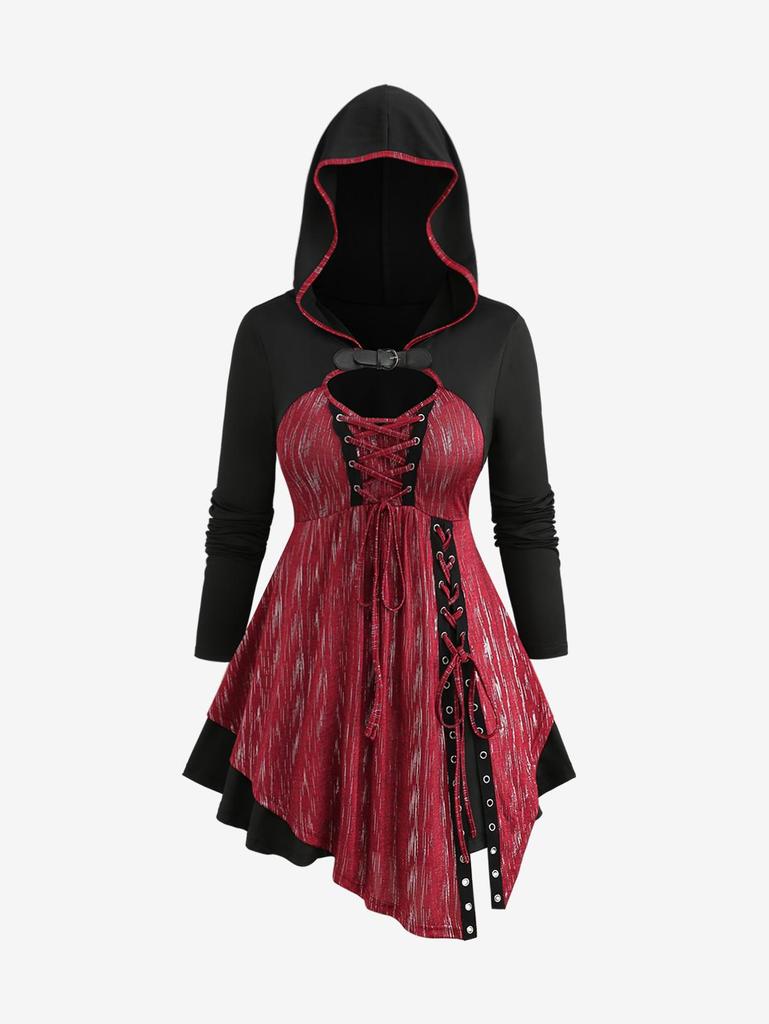 Tricou Rosegal Plus Size cu glugă asimetrică, cu cataramă strălucitoare și șireturi