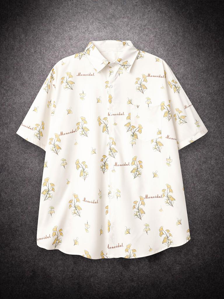 Oversized Loose Short Sleeve Ginkgo Print Hawaii Beach Summer Men Shirt Student Couples Fashion Casual Mens Clothing