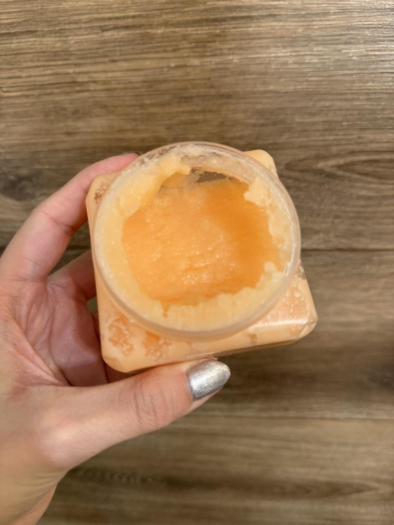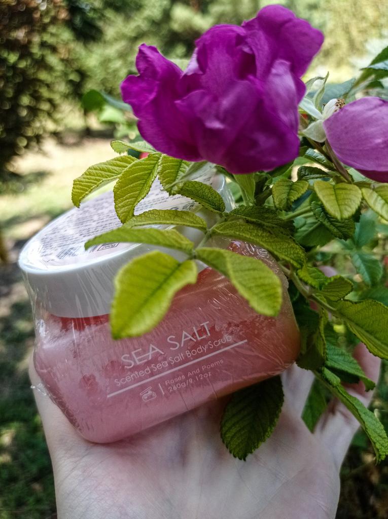 Scrubul este grozav. Miroase a trandafir, consistență clasică sărată. Pielea după utilizare nu este prea uscată, netedă și moale. Borcanul este de plastic, din păcate nu plin, undeva pe jumătate plin. Contine ulei, asa ca il recomand pentru tenul uscat. Seria include și scrub cu portocale, mandarine (portocalie).