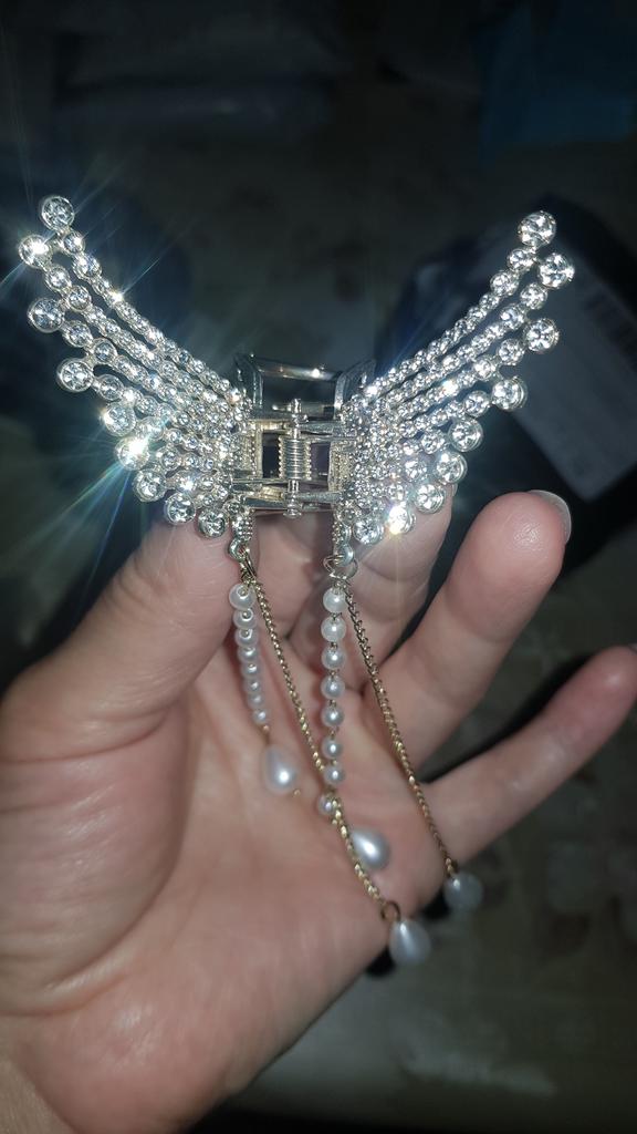 Agrafa este și ea drăguță, credeam că va fi mică, dar nu, este normală, arată frumos în păr 🙂