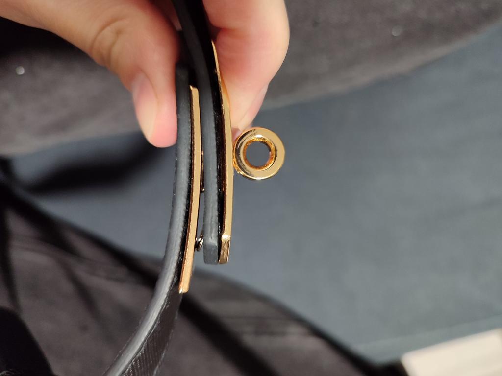 Cureaua este frumoasa, dar din pacate am primit un defect.. Unul dintre nituri este deformat, din această cauză capetele nu se potrivesc între ele și, în consecință, cureaua este greu de fixat și arată neglijentă.. Pacat pentru ca vanzatorul a vazut ca trimite marfa de proasta calitate.... nu recomand.